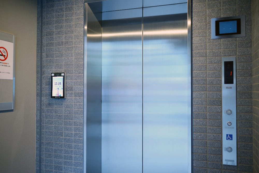 エレベーターと連動しており、エントランスで認証すると1階にエレベーターが着床する仕様になっている。