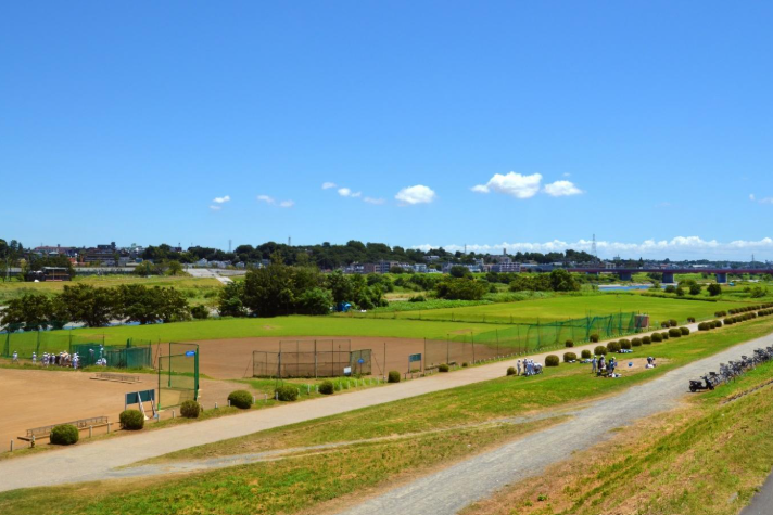 徒歩3分の場所には多摩川緑地が広がり、二子玉川や上野毛エリアなど都心の景観を楽しめる。