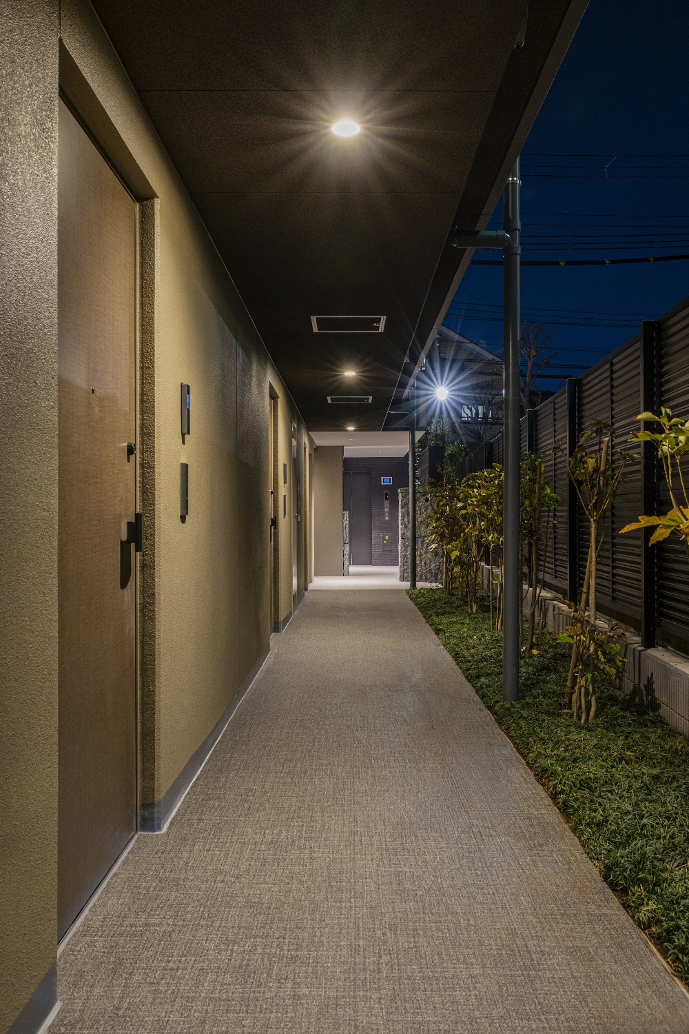 専有扉は、電気錠と連動している。共用で使用するには耐衝撃、それ以外の場所にはデザイン性の高い端末を設置して、機能性とデザイン性を両立した選択が可能となっている。