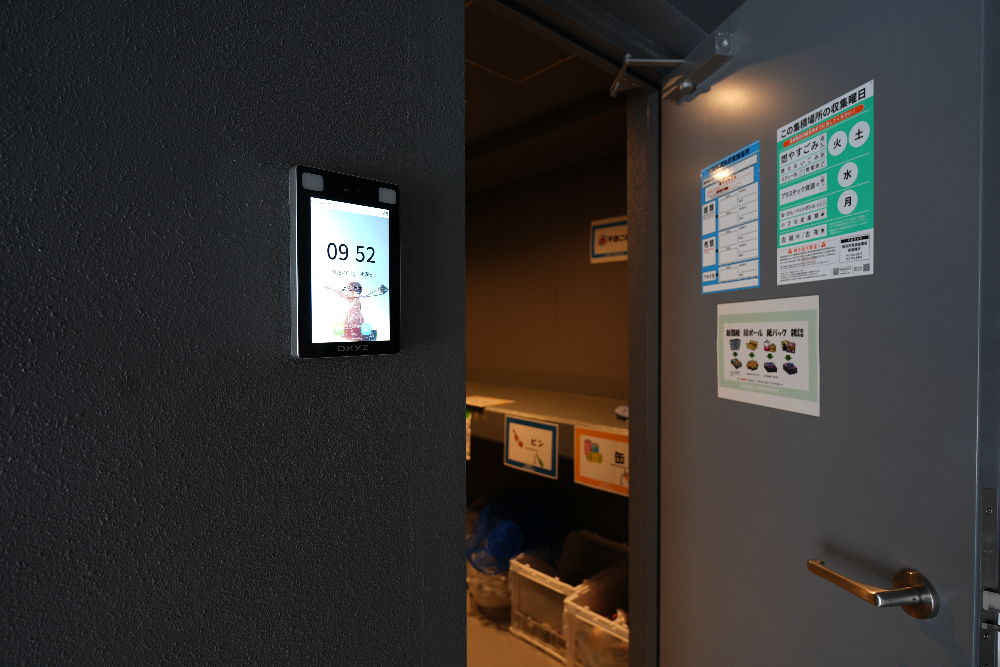 ゴミ置場の出入り口にも顔認証端末を設置している。住民以外がゴミを出せないセキュリティ区画にでき、ちょっとしたゴミ捨て時に鍵を持たなくてもいいので利便性が高くなる。