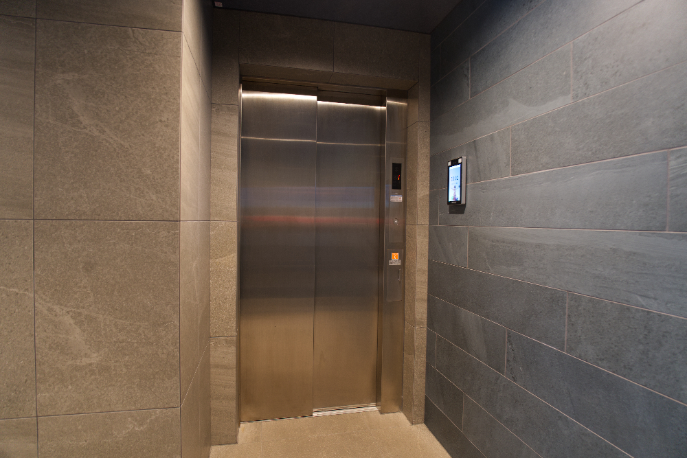 エレベーターとも連動し、エントランスで認証すると1階にエレベーターが自動着床することによる利便性と、エレベーター前で顔認証をすると居住階のボタンが自動で押されることによるセキュリティ性を確保している。