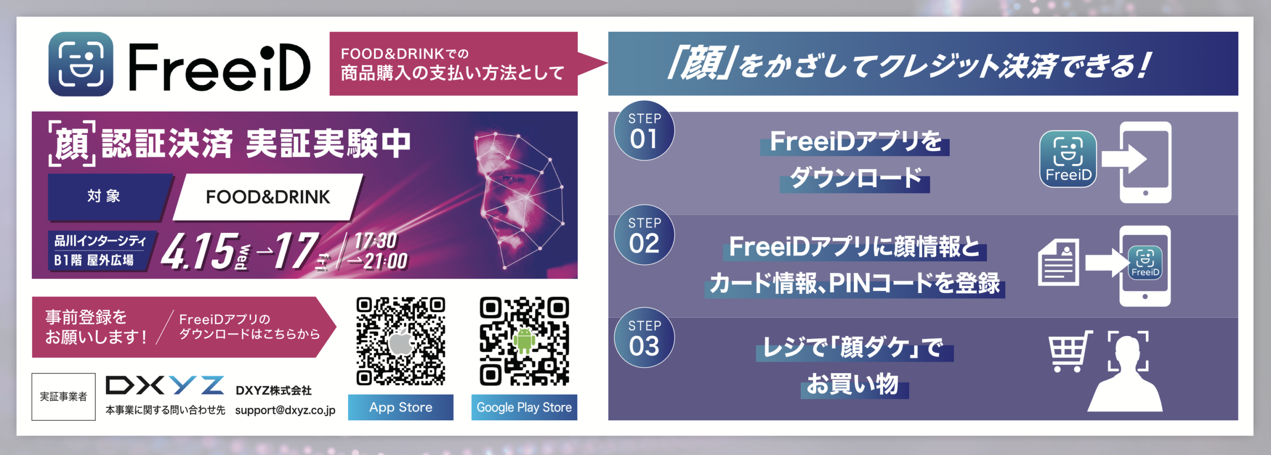 DXYZ、品川インターシティで開催する「SHINAGAWA TECH SHOWCASE」で3年連続 顔認証決済「FreeiD Pay」を実証提供 ~フード&ドリンクブースで「顔ダケで、買い物。」~