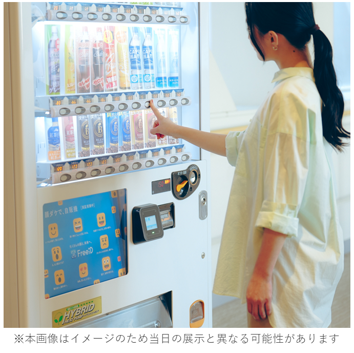今回が3回目の実証提供となり、フード&ドリンクブースでの商品購入の支払い方法として、顔認証決済をご利用いただくことができます。また、顔認証IDプラットフォーム「FreeiD」の顔認証決済を連携した飲料自販機用決済端末等を展示するブースも出展いたします。店舗外購買の新たなスタンダードとなる体験「顔ダケで、自販機。」の事業化に向けて実証事業を推進して参ります。
