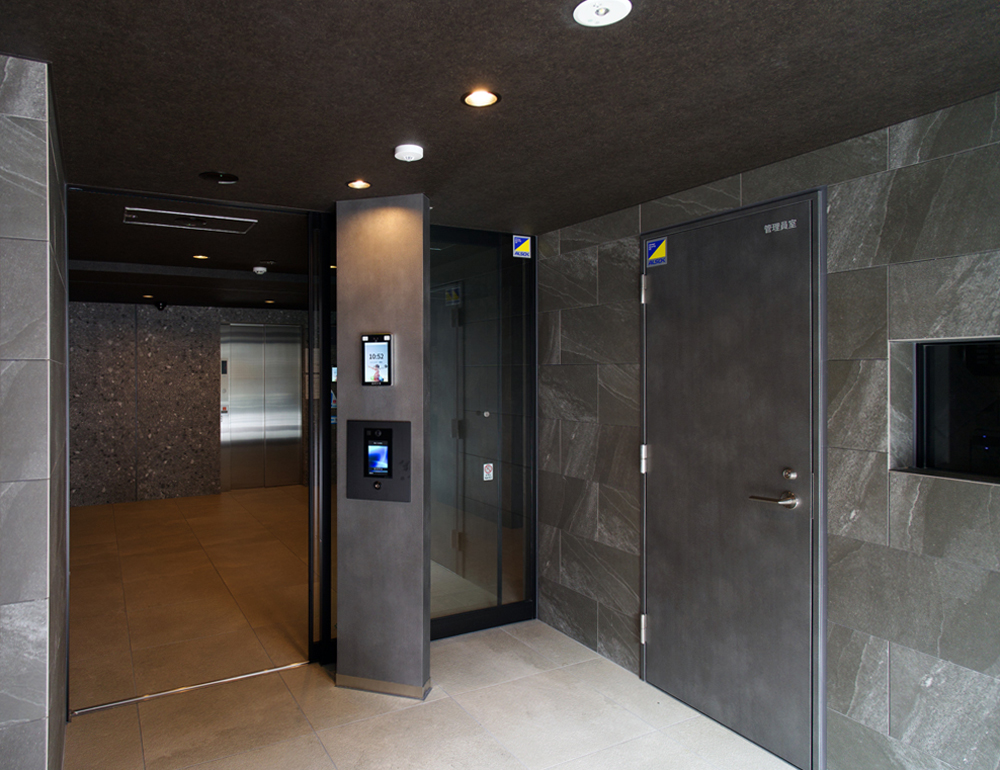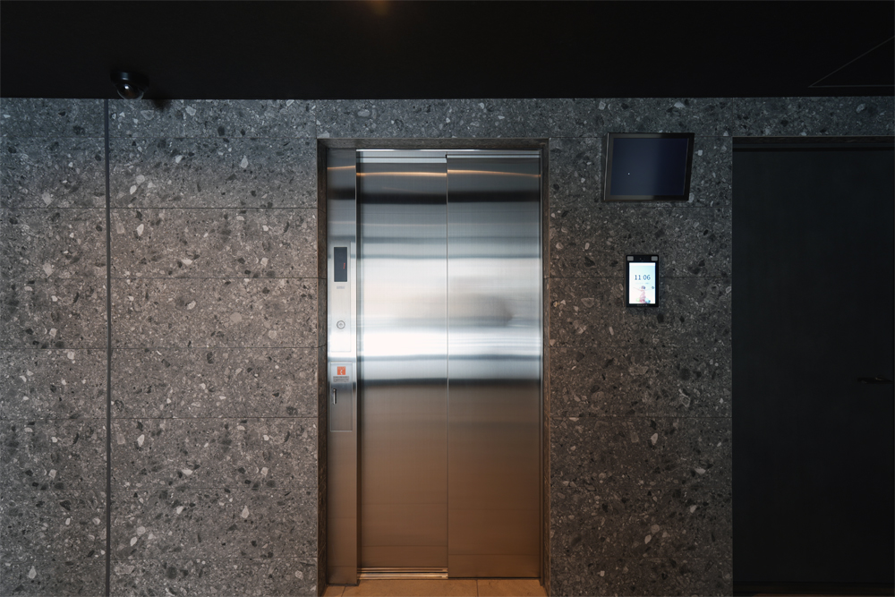 エレベーターとも連動し、エントランスで認証すると1階にエレベーターが自動着床する仕様になっている。エレベーター前で顔認証をすると居住階のボタンが自動で押される利便性とセキュリティ性を兼ねている。