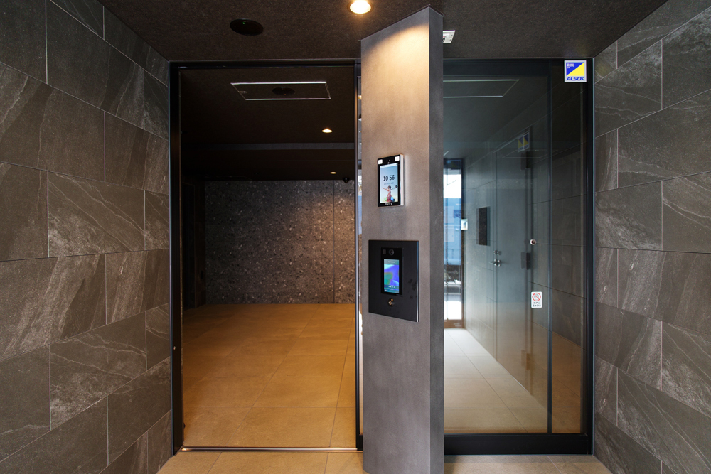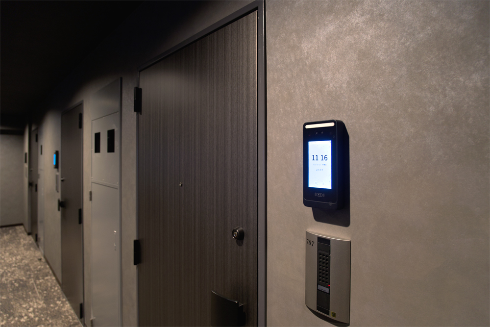 専有扉は、シブタニの電気錠と連動している。顔認証端末を設置する箇所に応じて、機能性とデザイン性を両立した選択が可能となっている。
