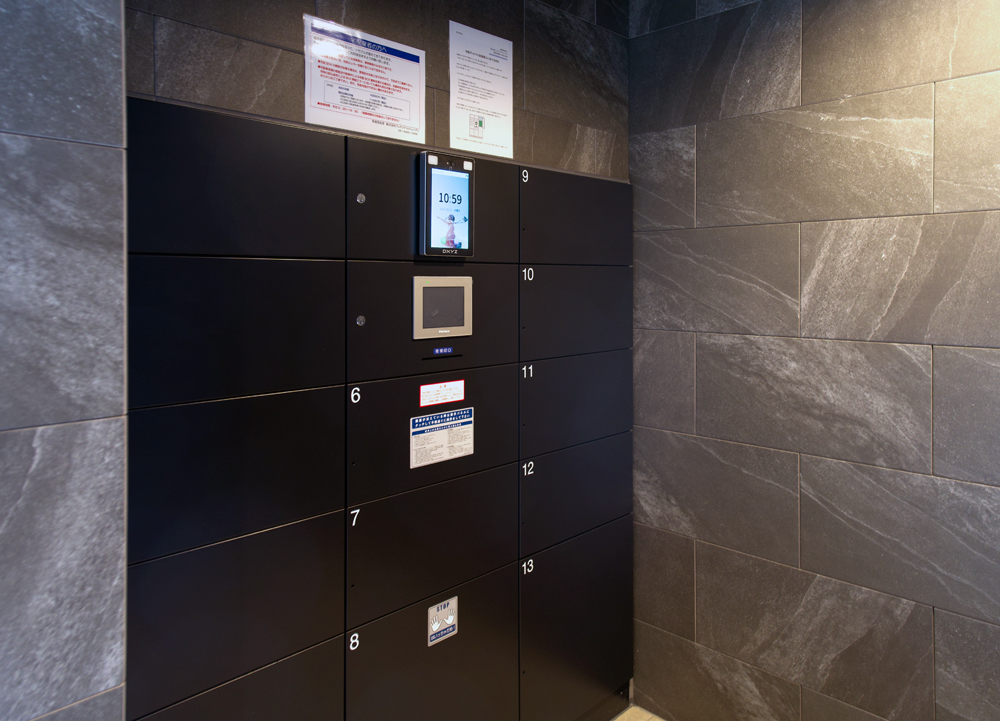 部屋番号と顔認証が連動しているため、認証すると自動で扉が開く仕組みになっている。また、ボックスと顔認証端末が一体になっているので意匠性を確保しながら省スペースでの設置が可能となっている。
