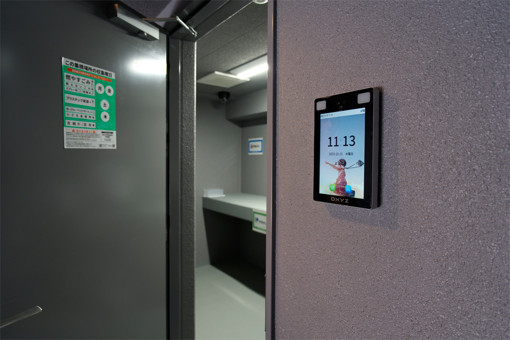 ゴミ置場の出入り口に顔認証端末を設置することで、住民以外がゴミを出せないセキュリティ区画にでき、ちょっとしたゴミ捨て時に鍵を持たなくてもいいので利便性が高くなる。