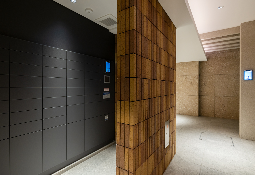 宅配/メールボックスとも連動している。部屋番号と顔認証が連動して認証すると自動で扉が開く仕組みになっているため、部屋番号を記載しない運用も可能となっている。また、顔認証端末が一体になっているので意匠性を確保しながら省スペースでの設置が可能となっている。