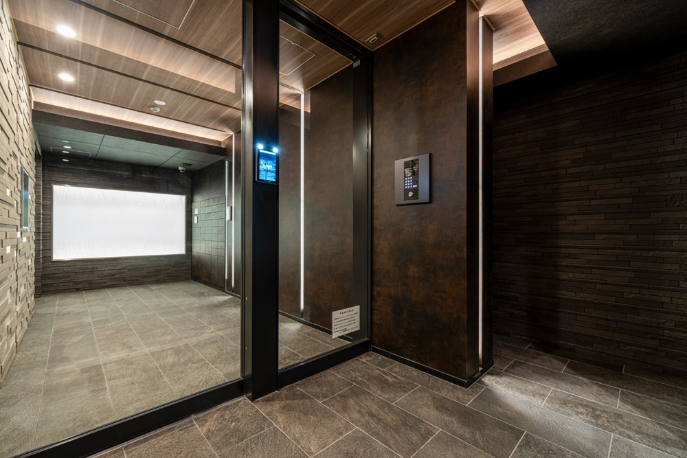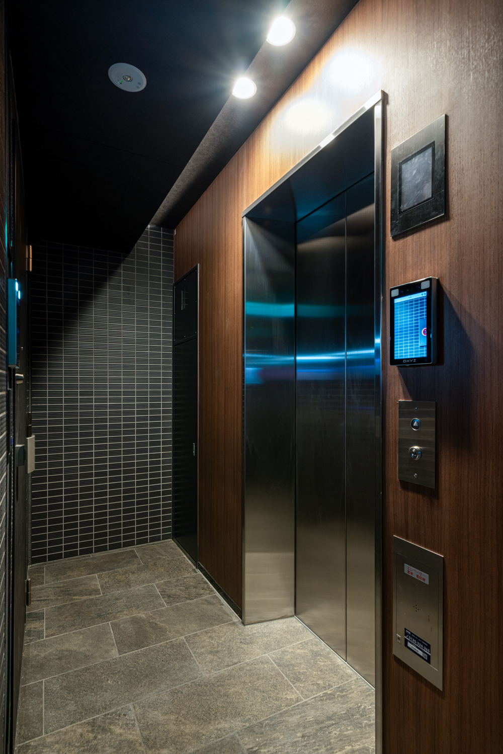 エレベーターと連動し、エントランスで認証すると1階にエレベーターが着床する仕様になっており、エントランスからエレベーターまでのウォークスルーを実現している。エレベーターのドアは、顔認証をしないと開かない仕組みなので、セキュリティ性と利便性を両立している。