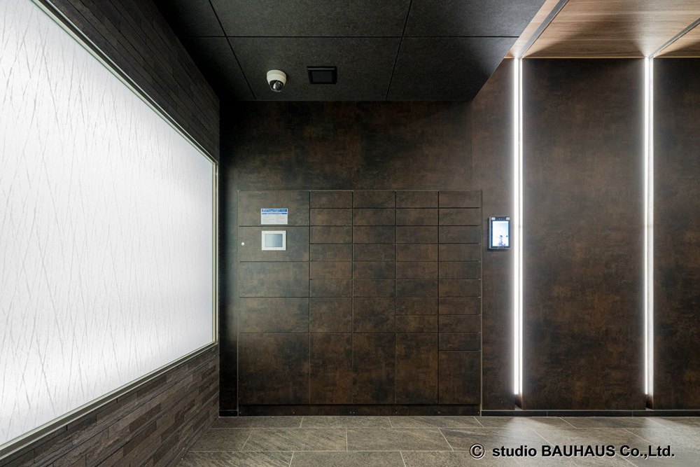 宅配/メールボックスとも連動している。部屋番号と顔認証が連動しているため、認証すると自動で扉が開く仕組みになっている。