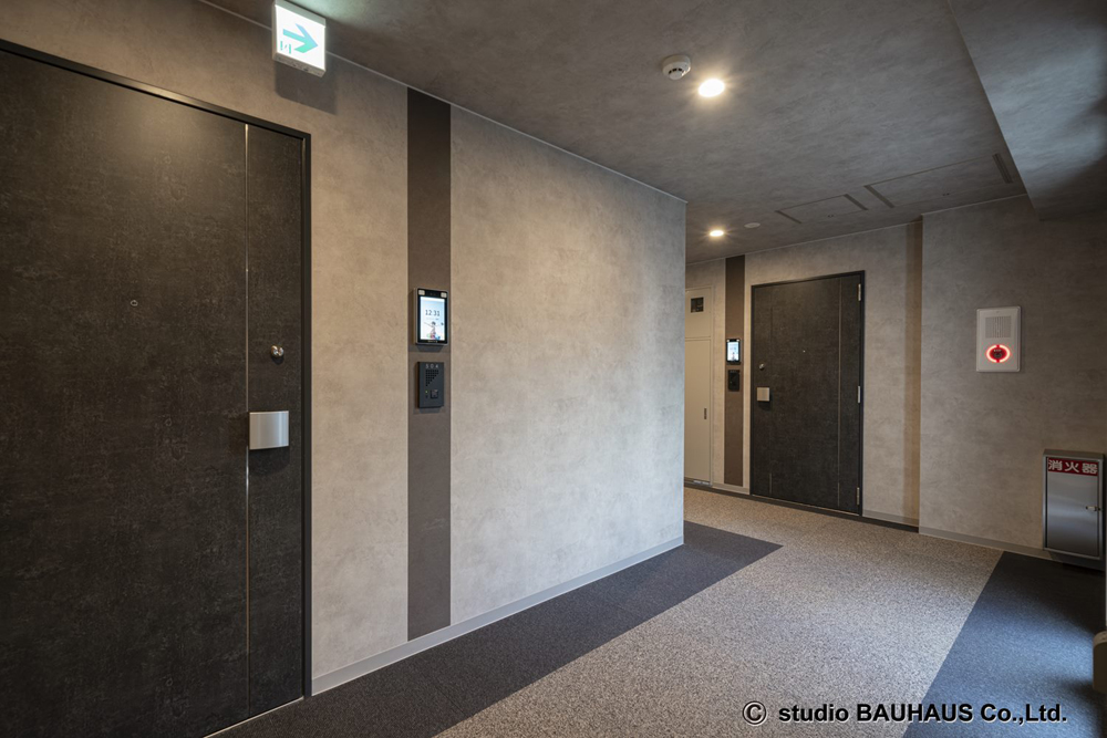 エレベーターと連動し、エントランスで認証すると1階にエレベーターが着床する仕様になっており、エントランスからエレベーターまでのウォークスルーを実現している。エレベーターのドアは、顔認証をしないと開かない仕組みなので、セキュリティ性と利便性を両立している。
