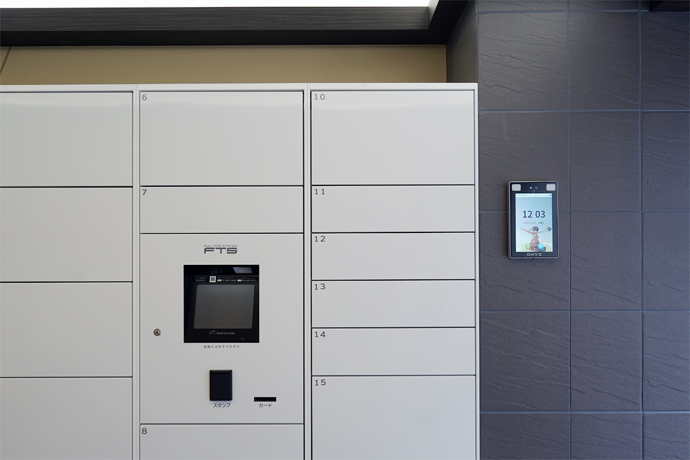 宅配ボックスは、フルタイムシステムと連動している。顔と部屋番号が紐づいているので、端末に顔をかざすだけで荷物の受け取りが可能となっている。