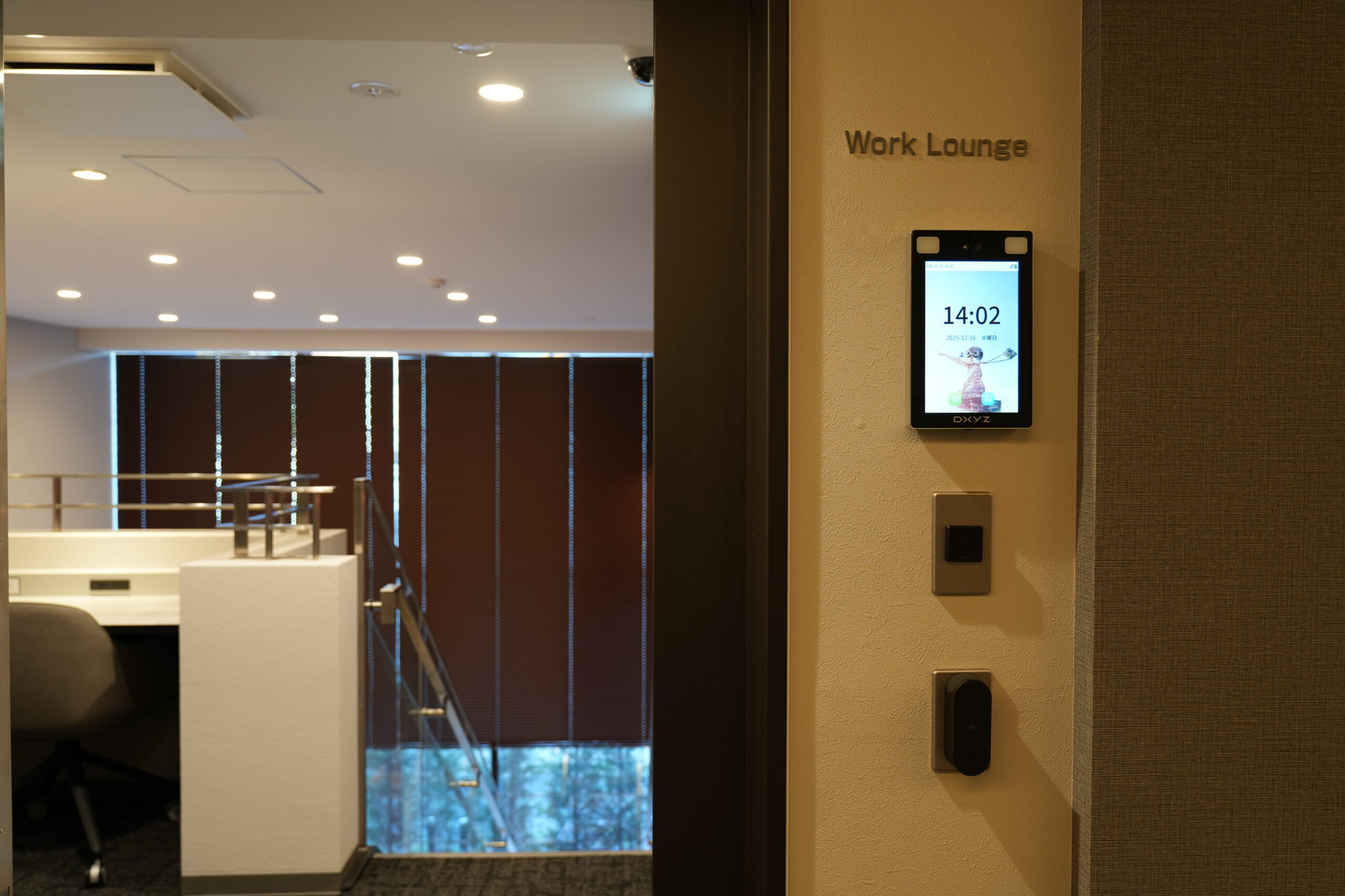 ワークラウンジの居住区画側に設置された顔認証端末。出入り口を誰でも入れない仕組みにすることでセキュリティ性を担保できる。
