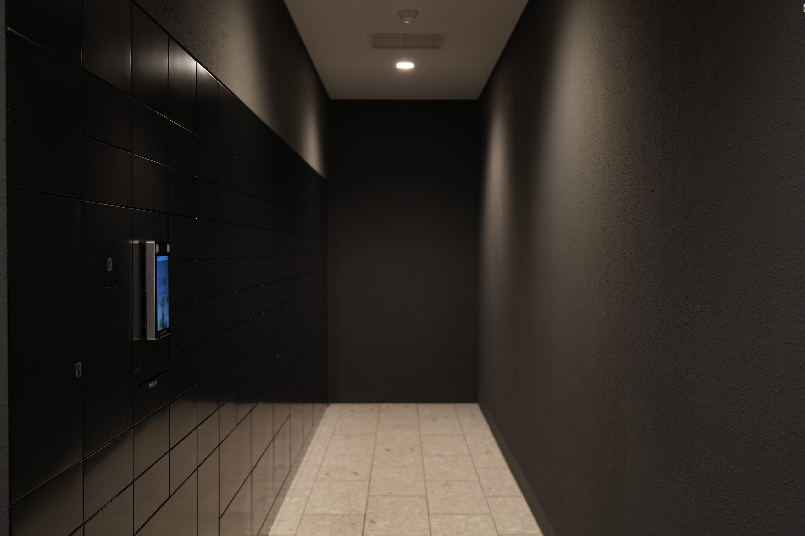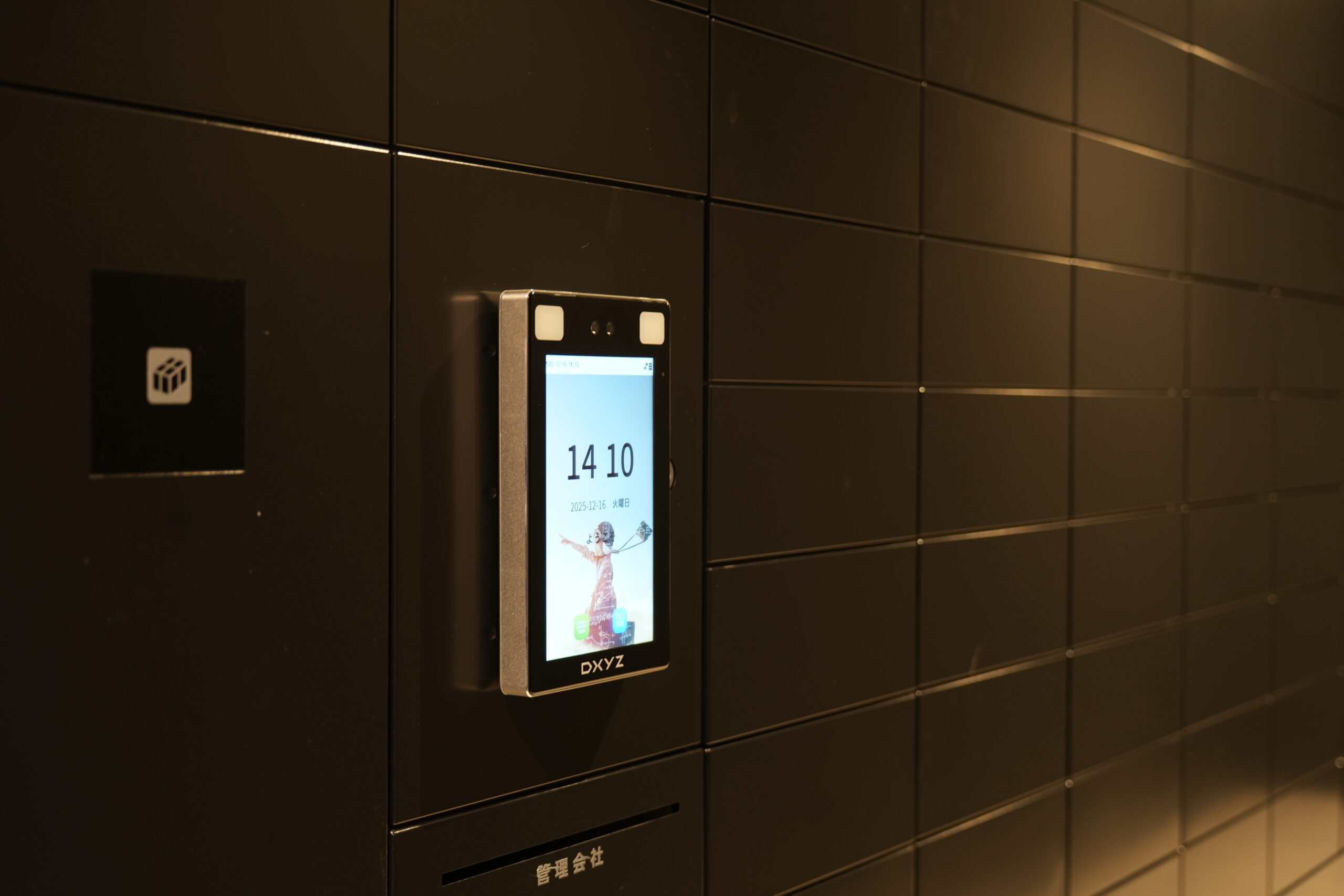 宅配/メールボックスに設置された顔認証端末はフルタイムシステムと連動している。ボックス側に端末を設置することができ、意匠性を高めている。