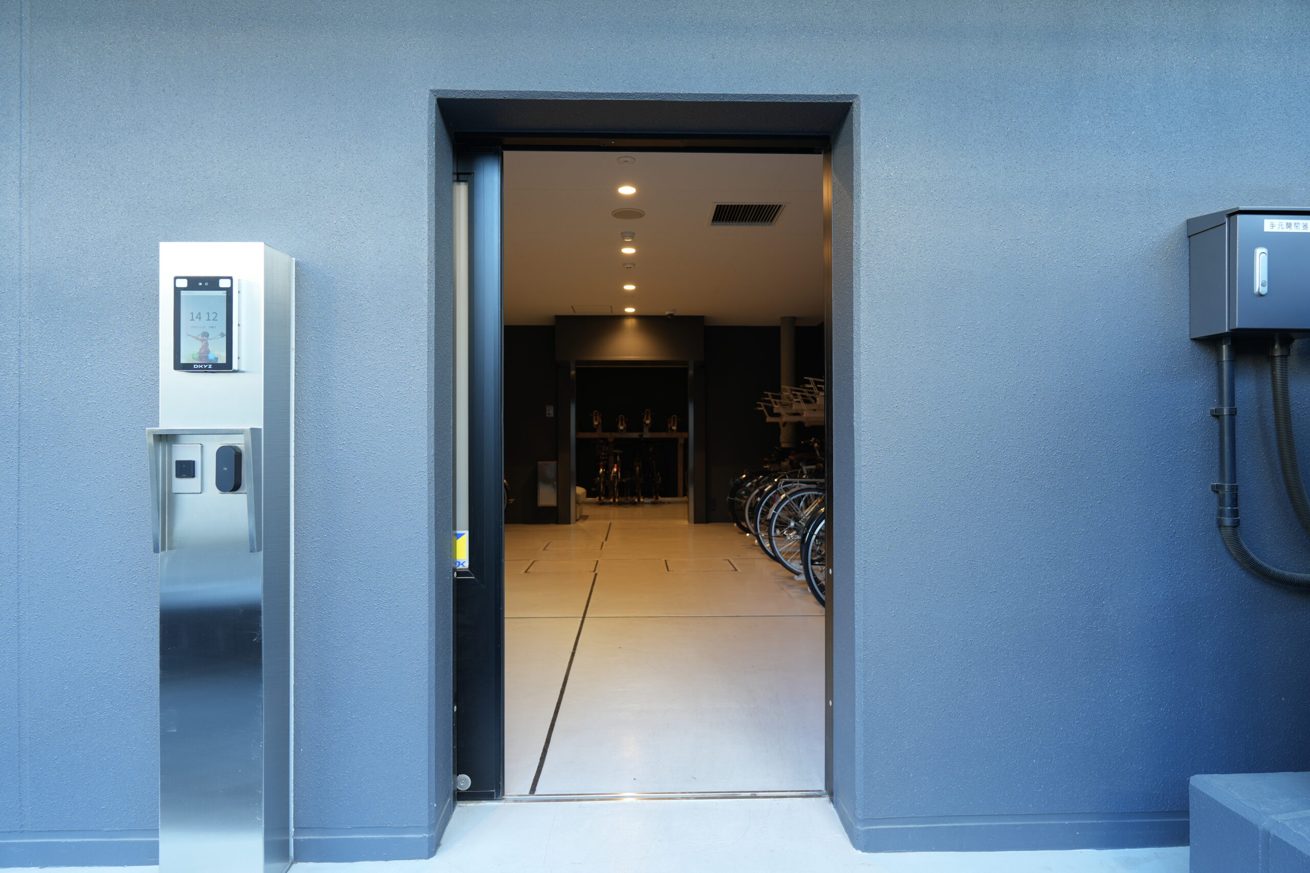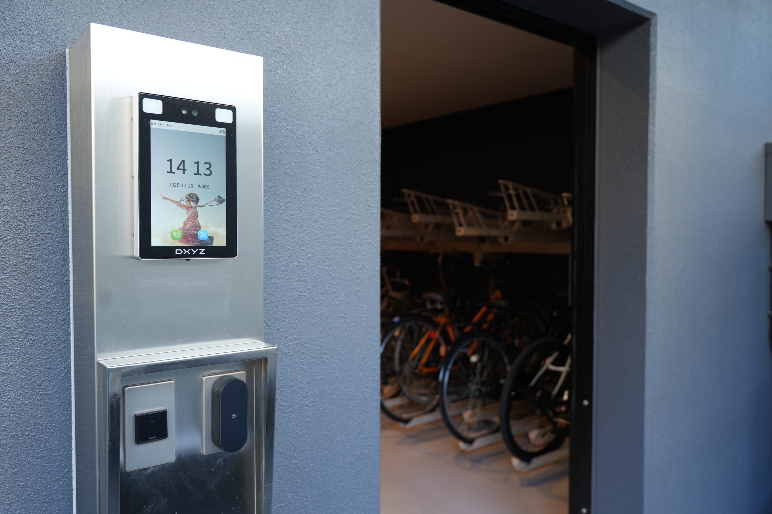 駐輪場に設置された顔認証端末。駐輪場に端末を設置することで、入居者以外の違法駐輪がなくなり、管理の手間を少なくできる。